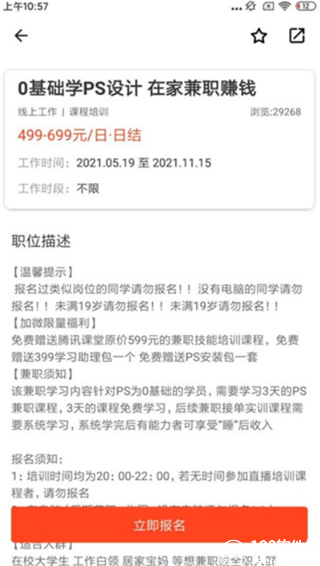 4、找到适合自己的,查看具体职位描述后,觉得不错的就可以【立即报名】