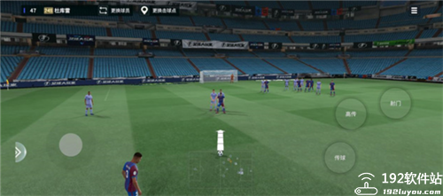 在本方半场被犯规后,玩家将主罚后场任意球。如果罚球位置位于我方半场,可以尝试长传或短传任意球。划动左方摇杆控制出球方向,长按传球或高传键即可出球。