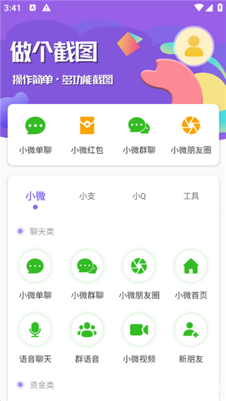 有时候大家为了满足自己的虚荣心,总是会在网上找一些比较厉害的图片来当作自己的朋友圈,比如今天和哪个明星见面了?又去哪个国家出差了?特别是一些从事微商的朋友们,为了宣传自己的产品多好,卖出了多少,都会虚构一下自己的朋友圈。那么不妨试试做个截图软件,这是一款非常神奇的微信对话框制作工具,大家可以将自己想要聊天对象的头像上传,然后聊天内容完全由你来定,比如情人节看到身边朋友们都在炫,作为单身狗的你也想凑一波热闹,那么就给自己虚拟一个对象,模拟他的转账红包,开局一张图,文案全靠编,十分有趣。