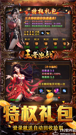 王者激战传奇官方版采用精细化复刻的复古像素美术风格,重现传奇类游戏的怀旧感,同时通过动态光影与粒子特效优化视觉表现,营造沉浸式战场氛围,还有多职业自由成长,提供战士、法师、道士等高辨识度职业,搭配无等级上限的成长线设计,玩家可通过副本挑战、野怪刷装持续提升角色属性,实现长线养成目标。