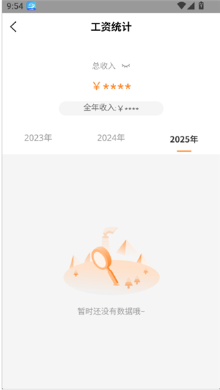 3、在工资统计页面可以查看本年全部收入,可以按照月份查询。