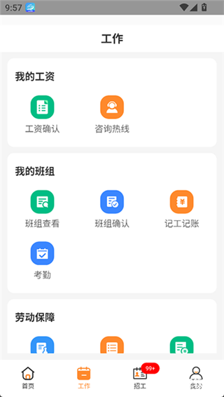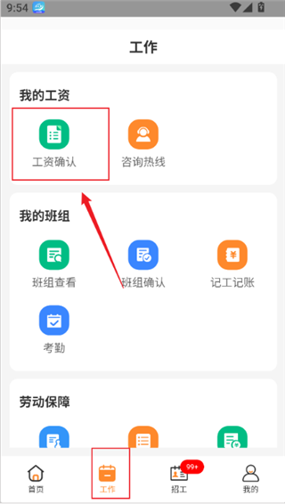 4、也可以进入【工作】页面,点击【工资确认】进行查看。