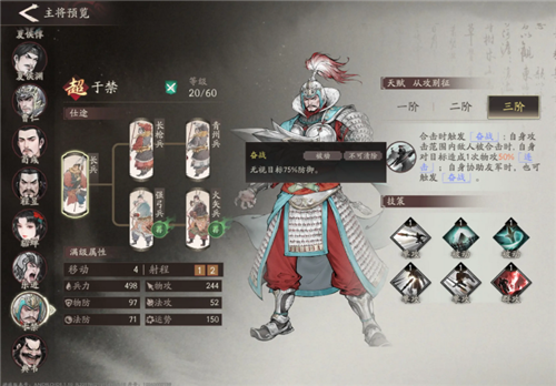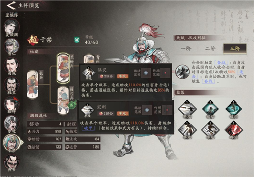2、大部分有名的将军角色都有独特的天赋以及技能,此外,有些角色会给其他角色加战法,而这些战法可以配合合击形成更强力的战法合击。