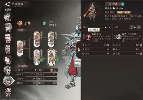 这里推荐物法双修的火矢兵,持续法伤里除了中毒为数不多的灼烧伤害也没让人失望,附加28%的额外法伤。暴击更是达到了350,比夏侯渊的骑射手要高。