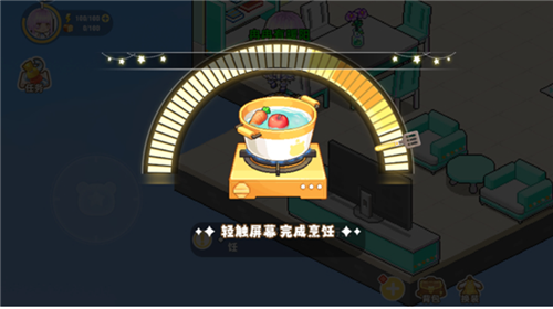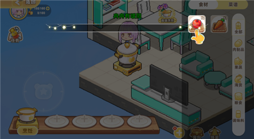 1、进入厨房后,咱们点击摆放好的烹煮锅进行烹饪。
