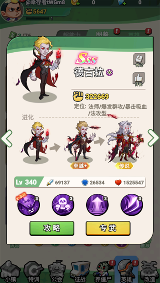 功夫之王的话在具备一定的伤害同时,还能够吸血提供不错的生存能力,在暴怒状态下伤害会突飞猛进,还可以不断进化解锁更强形态。