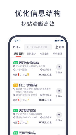 大家也可以自行筛选,根据距离最近、排队最少、电池最多等条件,可以找到最适合你的那一刻,到达后直接扫码充电即可,线上就是随时支付和查询你的订单情况。