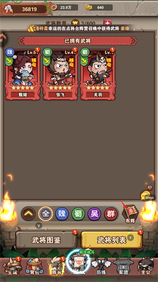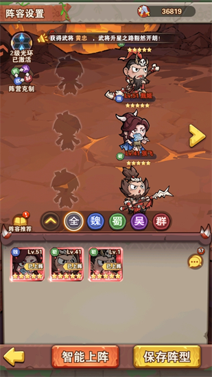 而且还有跨文明策略体验,玩家在原始部落环境中指挥名将征战,融合钻木取火式资源采集与三国军事策略,实现冷兵器时代与石器文明的创意缝合,并加入智能托管战斗系统,全自动推图:跳过手动操作,支持倍速、一键跳过战斗动画,离线挂机持续积累资源,经验、装备、金币,当然也可以手动操作,操作技术好能大幅提升战斗力,这也是因为游戏中武将技能可以搭配,合理的释放时机可以打出更多伤害哦。