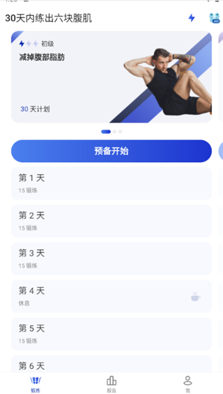 对于很多男生来说,如果能够拥有六块腹肌的话那绝对是一件非常自豪的事情,但是对于大部分的上班族来说,每天下班后根本不想去健身房,而且请私教的话价格也是比较昂贵。那么不妨试试30天内练出六块腹肌app,这是一款非常高效的健身软件,能够让大家在30天内拥有完美的六块腹肌,前提是大家需要按照科学的训练计划,搭配健康的饮食和生活习惯,这完全是可以实现的目标,趁着自己还年轻,不如逼自己一把,看看自己的最完美的样子。如果是刚接触健身的朋友,一上来不要太猛,咱们先把肚子上的脂肪减掉,练三休一,锻炼肌肉。