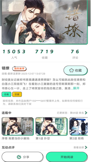 当然了遇到了好的作品一定要分享给自己的好友,大家可以聊聊精彩的剧情,以及对于后续故事的预测,包括自己喜欢的人物,这位大家增加了不少有趣的话题,随时参与互动。