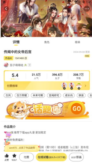 丸漫官方版是一款沉浸式的漫画阅读平台,大家来到这里不单单是单纯的看漫画,而是以一个参与者的方式可以融入到精彩的剧情当中,成为故事中的主角展开你的成长故事,提供了不同的互动模式任你选择,大家可以创造属于你的全新篇章。平台内的作品大多数以女性向为主,有大家喜欢的霸道总裁、宫斗穿越、养成逆袭等,大家可以面对众多帅气的男主,和他们之间都有一些缠绵悱恻的爱情故事,这可让人十分享受,大家在阅读的过程中,可以感受不一样人生的精彩篇章。