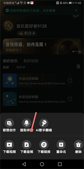 MuseAi无限积分版是一款音乐创作软件,有着全流程极简创作,用户通过单次操作即可生成包含旋律、编曲、歌词的完整音乐作品,大幅降低创作门槛,尤其适合非专业用户。还有着情景化情绪定制,输入特定心情或场景描述,如雨天咖啡馆,AI自动生成贴合情境的旋律与编曲,实现情感驱动创作,还有跨语言歌词引擎,支持中/英等多语言混合输入,自动处理语法适配与韵律协调,突破语言创作壁垒。