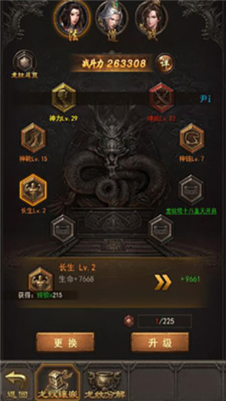 挑战龙纹塔可获取品质一般的铭文道具,高品质龙纹则需要参加活动或进行探宝,因为探宝会根据已开启的龙纹数量决定能获取的龙纹,所以建议将龙纹塔层数打高,开启更多铭文后再进行探宝,除此之外,玩家还可根据角色自身神装等阶,来取舍使用哪些神装强化龙纹。