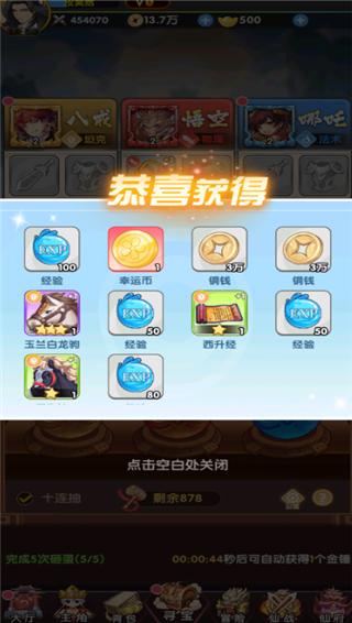 西游大乱斗手游官方版是一款独具亮点的角色扮演类游戏,取材于大家都特别熟悉的《西游记》,咱们将要展开一场创意十足的取经之路,那些熟悉的英雄人物都将悉数登场,孙悟空、唐三藏、白骨精、牛魔王、黑熊精等,玩家可以从金蛋中抽取自己心仪的角色,每个角色都有着不同的战斗定位,比如大名鼎鼎的美猴王,作为强力的输出英雄,核心技能“棒打乾坤”为群体伤害,能够对前方大范围的敌人造成一定打击,有机会造成眩晕效果,给予你一些输出机会,而筋斗云”提供位移与追击能力,是不错的连击基础。