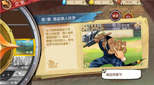 4、选择章节进行挑战,第一章海盗猎人索隆。