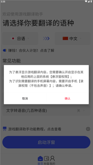 当我们在玩一些国外游戏的时候,常常会遇到语言方面的难题,看不懂剧情内容,体验感太差。那么不妨试试游戏翻译助手app官方版,这是一场超级高效的翻译辅助工具,支持多达15个国家的语言,不管是英文、日文、还是韩文等都能轻松搞定。大家操作起来也很简单,使用前为了悬浮显示游戏翻译内容,需要大家确认开启【悬浮窗权限】,以及为了识别需要翻译的手机屏幕内容,需要开启【录屏权限】,然后就可以进行使用了。直接在屏幕上框选需要翻译的内容,就能快速得到想要的结果。