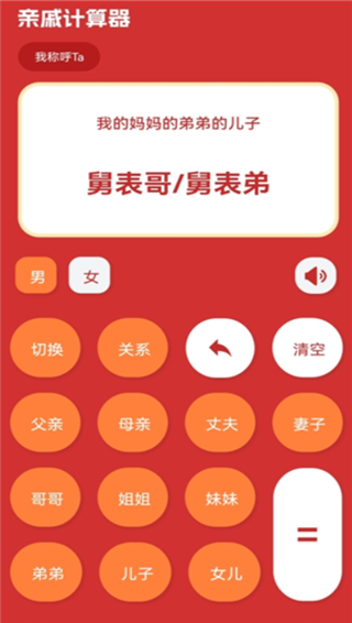 马上就要迎来了春节了,可以说是我们一年中最重要的日子了,自然少不了走街串巷拜访亲友,但是对于小一辈来说,现在的年味感觉越来越淡了,面对那些一年可能就见一次的亲戚,见面都不知道怎么打招呼?不妨试试亲戚称呼计算器app,可以将彼此之间的关系输入进去,就能知道自己应该怎么喊了,比如我想知道妈妈的弟弟的儿子,我该叫什么,输入后就会显示对应的答案,你该称呼为舅表哥/舅表弟,然后切换的话对方该怎么叫你也能一目了然,这样彼此见面不会那么的尴尬,你看着我我看着你也不知道说啥。
