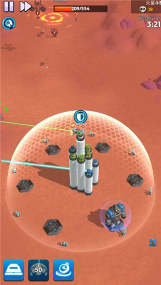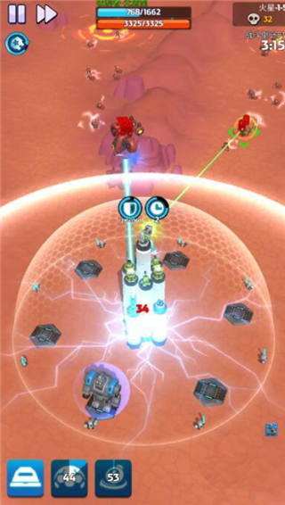 2、成功的进行了锁定之后,基地的防御塔会针对性的发起攻击,这个时候敌人的防护罩能量会大面积的丢失,玩家们还可以召唤出多个碉堡参与到输出当中。这一阶段可以成功的摧毁掉对方的防护罩。那么接下来,玩家们的攻击就会对敌人造成真实伤害了,这个时候其他防御塔也会加入到攻击当中。