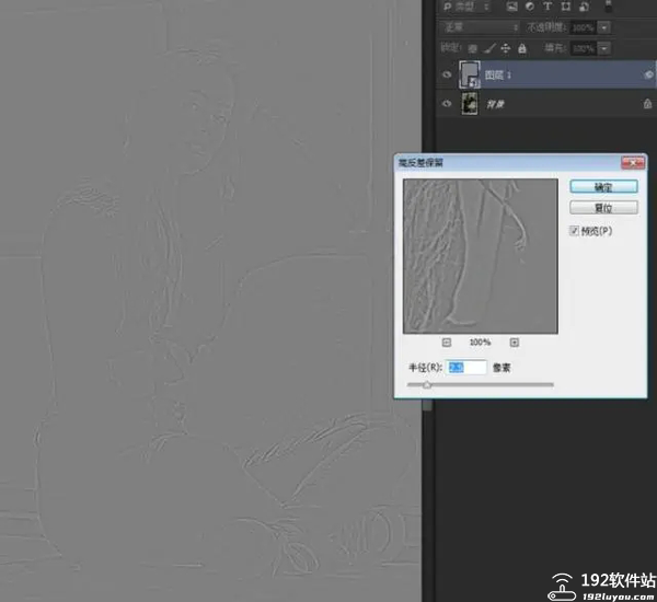 3、进行设置高反差保留的半径,数值尽可能小一点,这里小编设置为1-3像素;